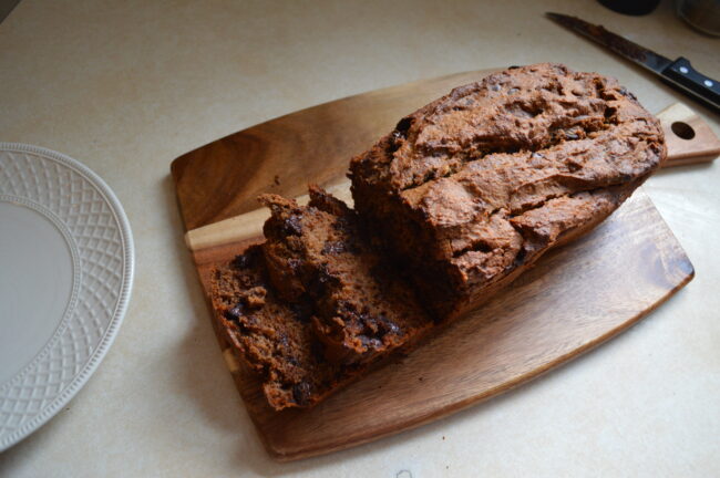 “Uhhh, bananas?” he said, “And bread… but we don’t have any bread.” We almost never have bread in the house. Occasionally, we buy gluten-free bread when we are on vacation. Although we had some for company over winter break, we used it up the week before.