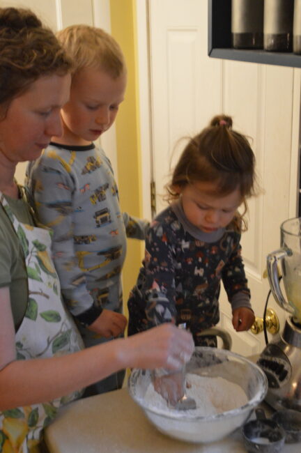 Cooking with toddlers is insanity. (But so cute! Look at that picture!) Twice the time, twice the mess. That’s ok. You’re playing the long game. Let them dump a few things in. They don’t have to learn how to do everything at age 4. Expect it to be messy and stressful. There will be a couple of sweet moments. That’s a win. Don’t expect it to be a hallmark commercial from beginning to end.